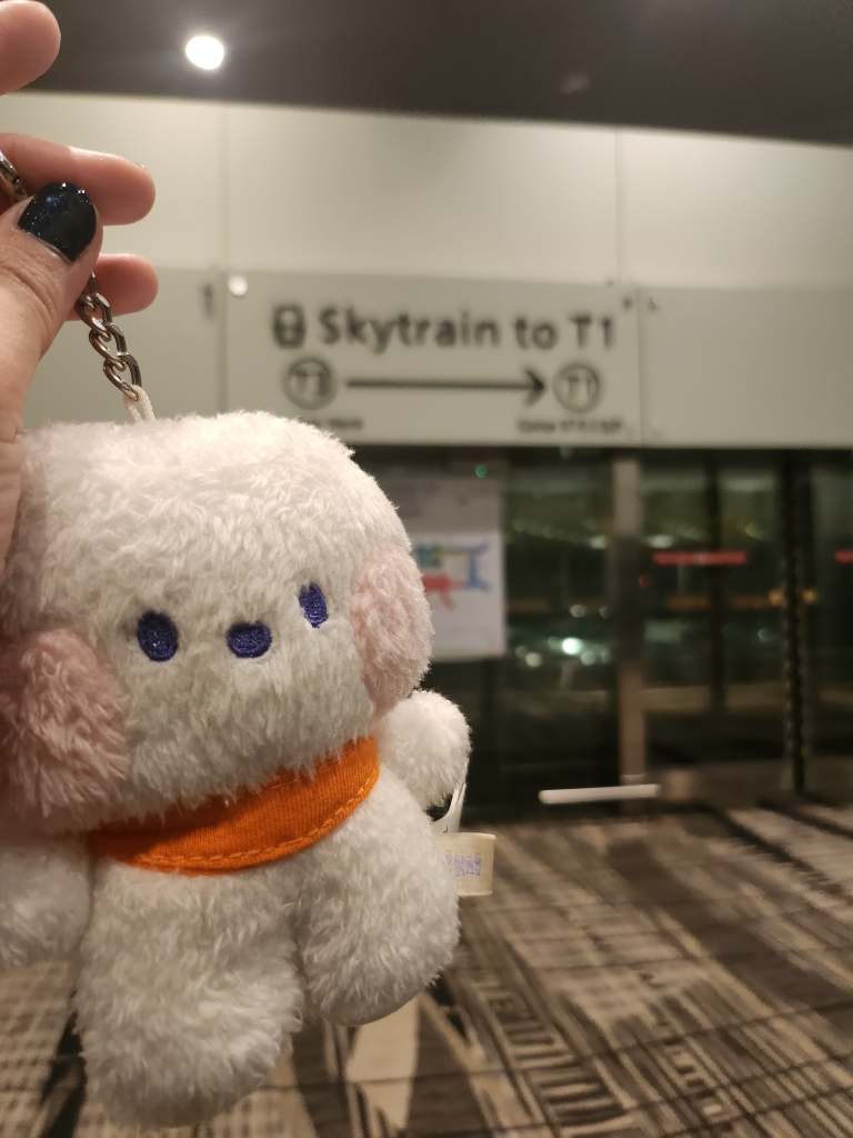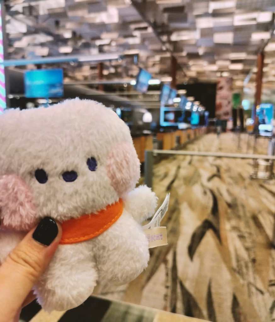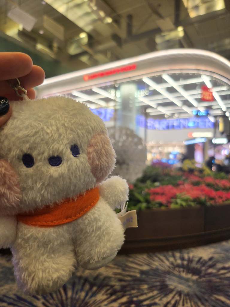 So, instead of subjecting myself to the horrors of front-camera photography, I came up with a genius workaround—documenting my trip through my bag charm, RJ (yes, the minini plush RJ from BT21, because of course every aspect of my life is BTS-coded).